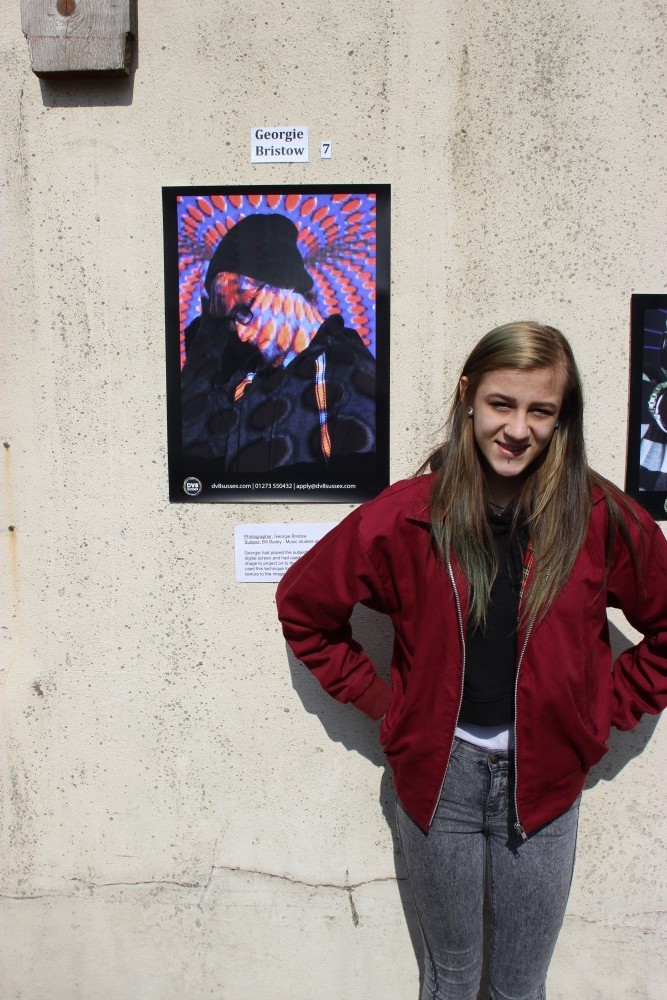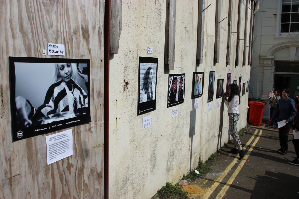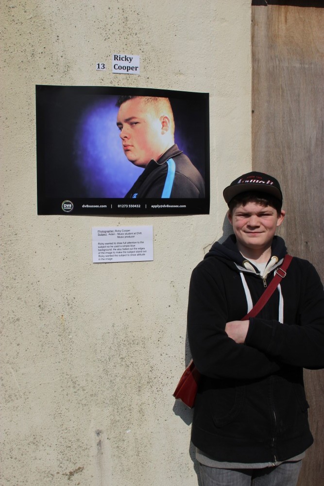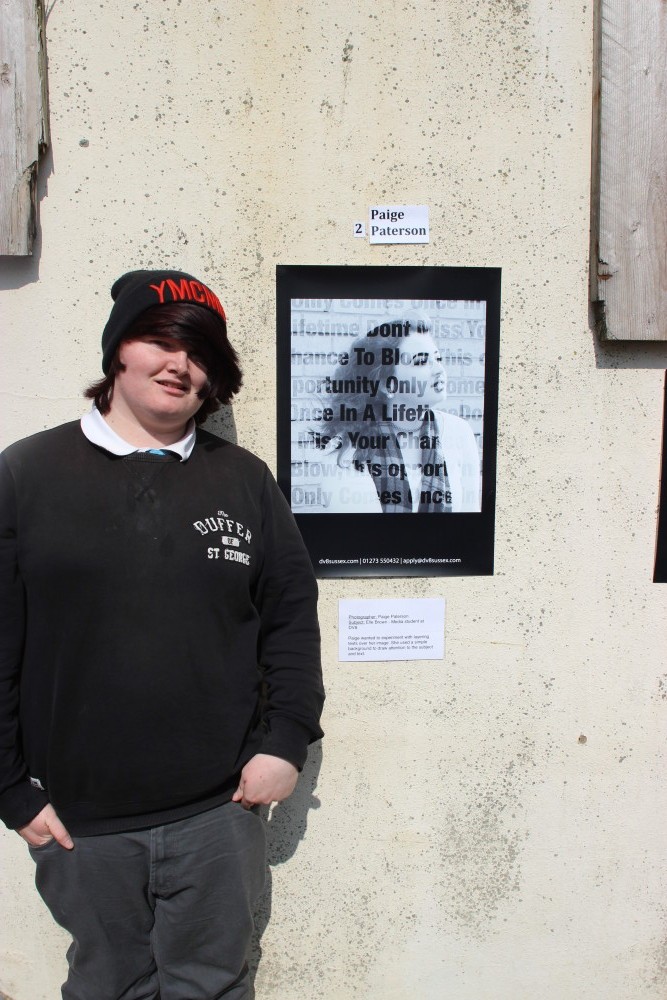 To tie-in with the music photography theme the images were innovatively made into posters and displayed as fly-posters on the wall in front of the space where the old Queen Square ice rink used to be (which is next to Dv8 Sussex’s Brighton campus). This brought some colour some colour a wall which even the most optimistic amongst us find pretty dull. There was excitement in the air (plus Jaffa Cakes and Vimto to be consumed) as parents, friends and passers by came along to admire the students’ work and the whole college came together to celebrate some amazing achievements.